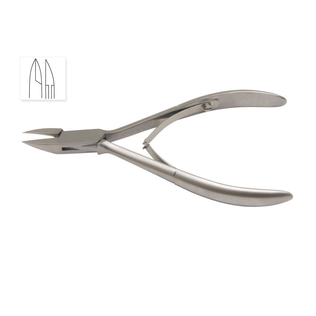 Size 5 Ultra fine Ingrown Nail cutter features a standard size straight blade with a pointed edge. The sharp straight blades meet at tips of nails giving a detailed and smooth cut to the nail. The pointed edge allows the cutter to reach into the ingrown nail and cut with ease. This cutter comes with double springs between handles to give perfect tension while the tool is in use.